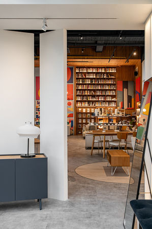 基於這樣的品牌精神,我們以 Mid-Century Modern 作為整體風格基礎,搭配 Bauhaus 的結構理性,並加入「生活溫度」的線索。無論是從台北室內設計或台中室內設計的角度來看,本案都不只是設計一間家具店,而是打造一個能讓人停下來感受的生活提案式商業空間。